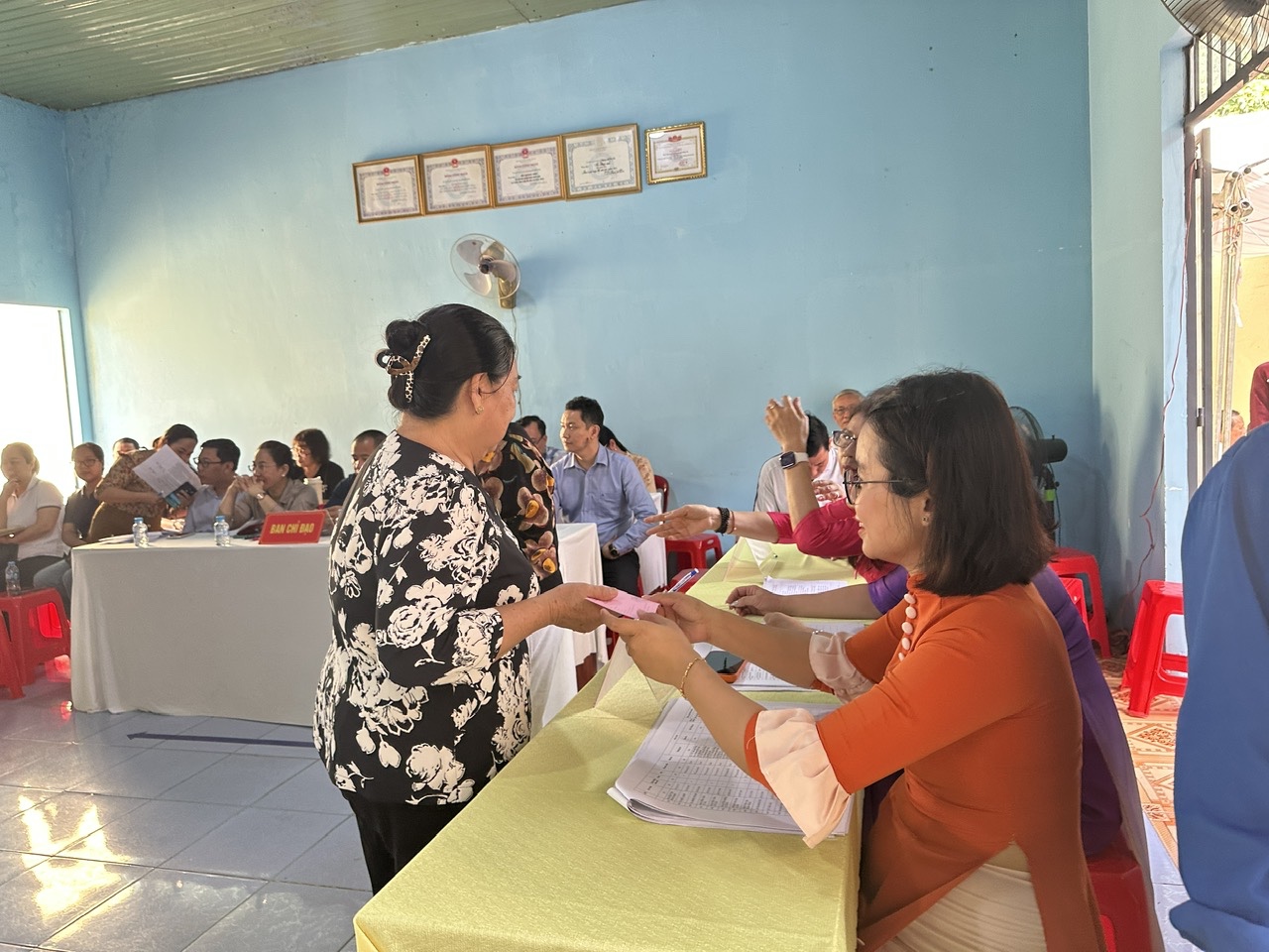 Bên cạnh phần nghi lễ, buổi diễn tập tập trung thực hành toàn bộ quy trình tổ chức cho cử tri bỏ phiếu, từ khâu hướng dẫn cử tri nhận phiếu, ghi phiếu, bỏ phiếu cho đến việc kiểm soát khu vực bỏ phiếu. Qua đó giúp các thành viên Tổ bầu cử nắm vững quy trình, thao tác nghiệp vụ và chủ động xử lý các tình huống có thể phát sinh trong quá trình tổ chức bầu cử.