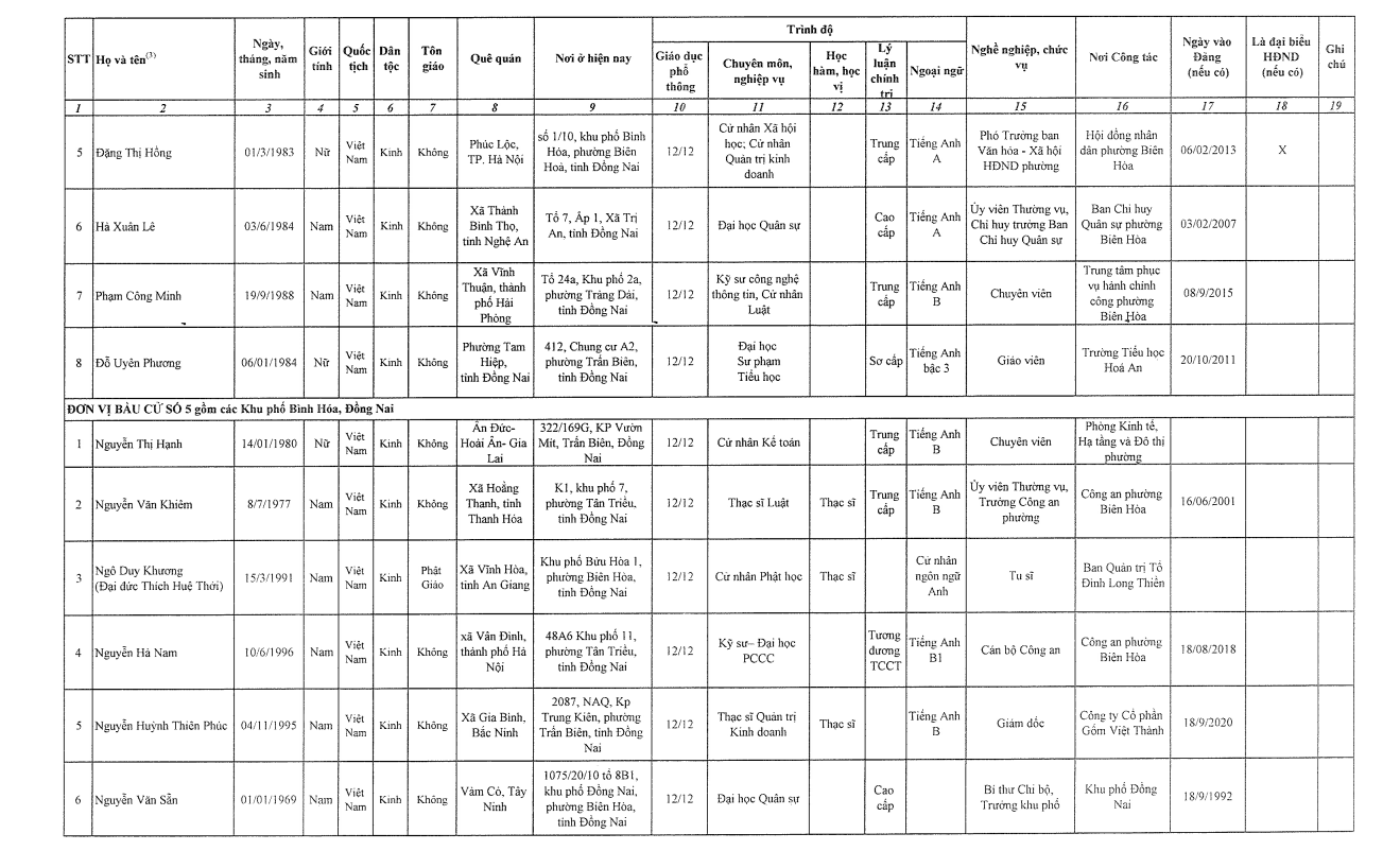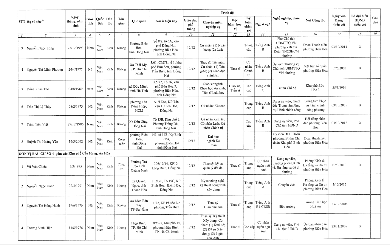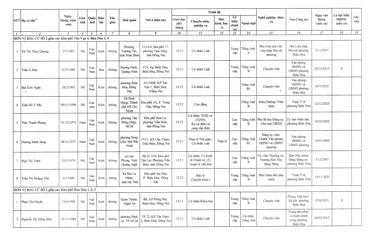 3. TIỂU SỬ TÓM TẮT CỦA NHỮNG NGƯỜI ỨNG CỬ ĐẠI BIỂU HỘI ĐỒNG NHÂN DÂN PHƯỜNG BIÊN HOÀ KHOÁ II NHIỆM KỲ 2026-2031